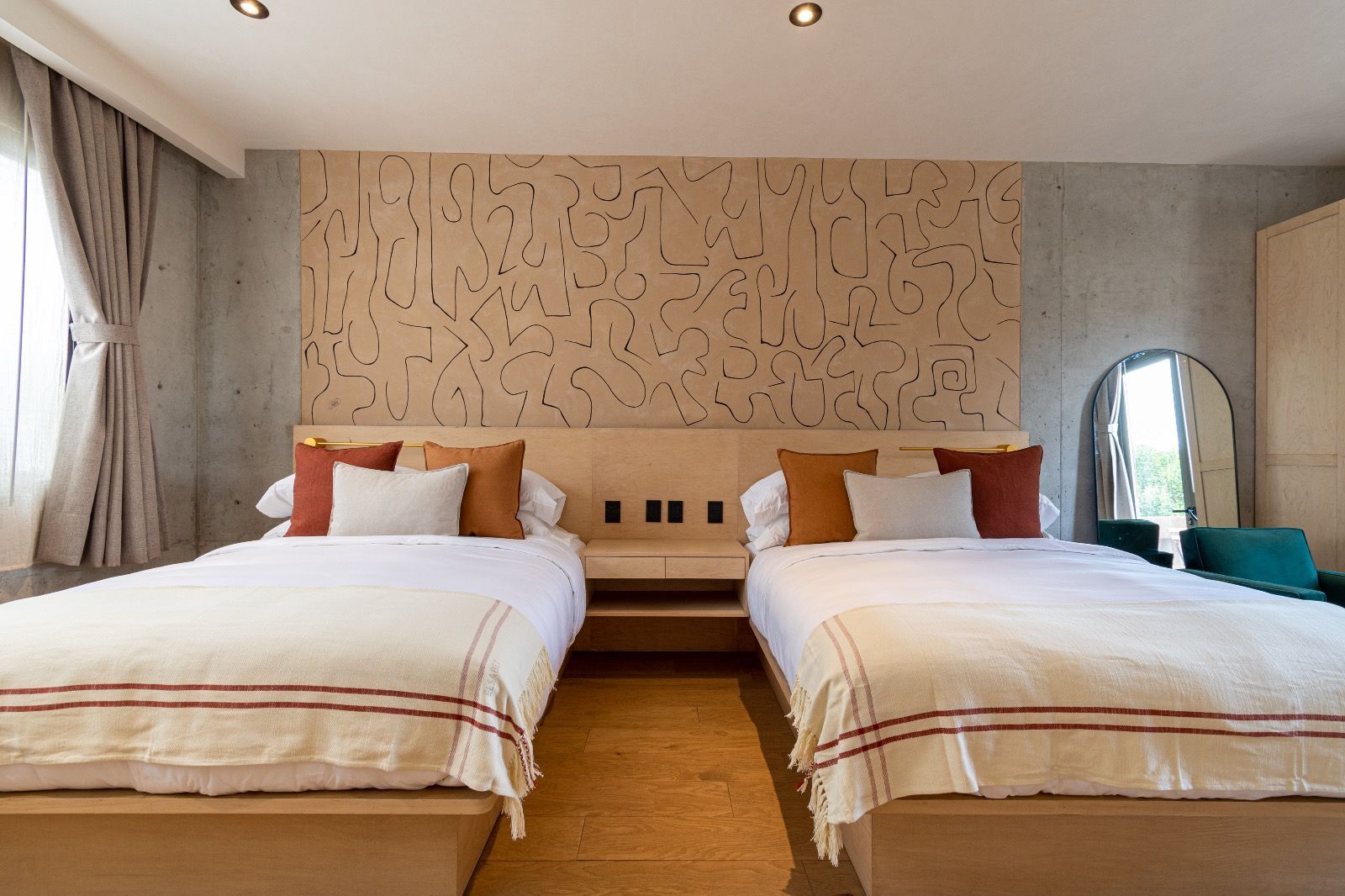 Spacious suite with 2 queen size beds, large private full bathroom, double-glazed windows, high-quality blackout curtains, 55-inch smart TV with 80 channels and streaming applications, internet with direct router in the room for a full Wi-Fi signal and possibility of connection via ethernet with 100 MB speed, Nespresso coffee machine, working desk and closet with safe.